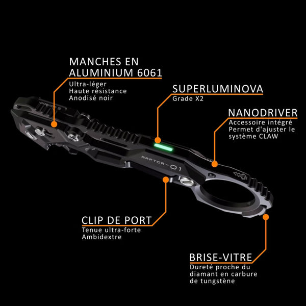 - marqueur lumineux intégré dans le manche (Superluminova Grade X2 pour briller dans la nuit)