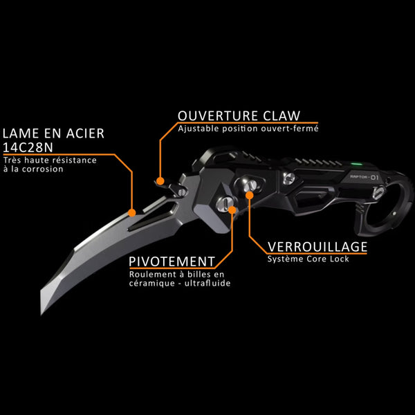 - lame verrouillée en position ouverte par une sécurité Core Lock